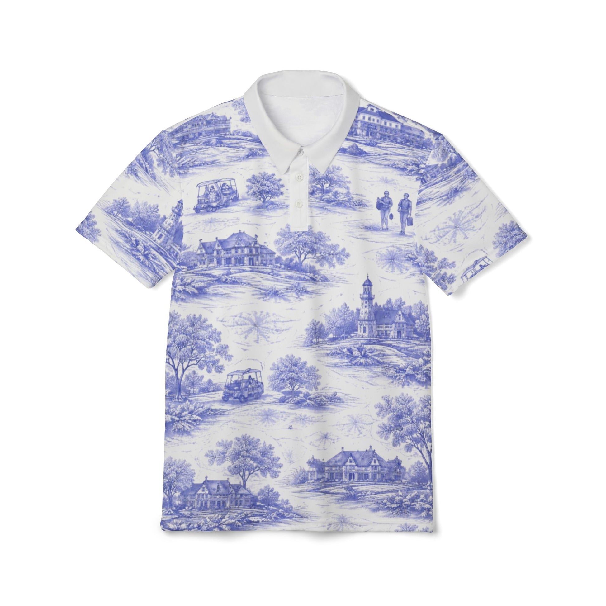 Timeless and refined, the Heritage Course polo features an intricate toile-inspired print that captures the charm of classic golf landscapes. Designed with a structured collar and three-button placket, it delivers a polished silhouette with understated character. Crafted from lightweight, breathable performance fabric, it offers all-day comfort while bringing a sophisticated, story-driven look to the course and beyond.